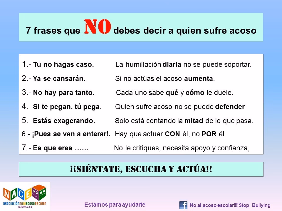 • Crean a sus Hijos: Si su hijo les confiesa que está siendo acosado, créanle. Validar sus sentimientos es crucial.