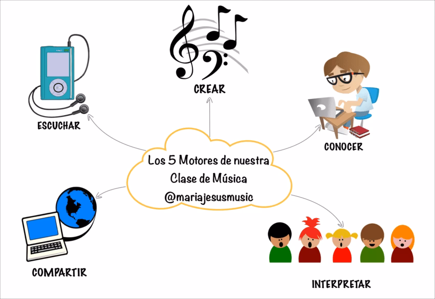 Utiliza juegos, movimiento, historias, colores, tecnología y, sobre todo, permite la experimentación y la improvisación en un ambiente sin miedo al error. Conecta la música con sus intereses (canciones favoritas, música de películas, etc.).