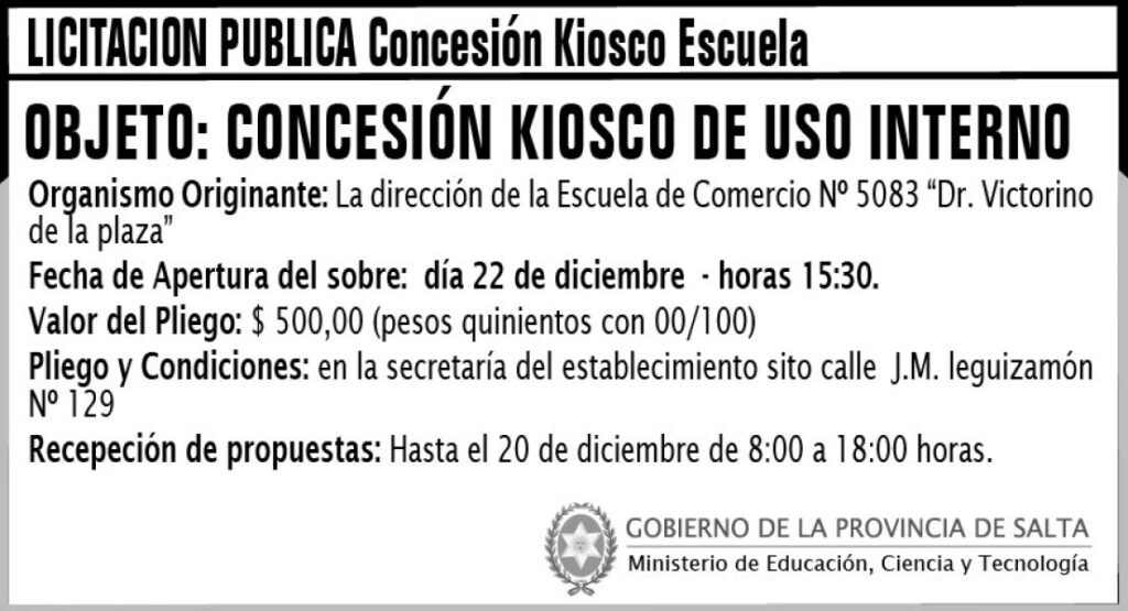 La licitación para concesionar un kiosco, buffet o librería escolar es un ACTO PARA SELECCIONAR CONTRATANTE que será futuro concesionario del servicio que se contratará.