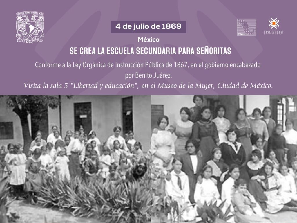 Aunque el proyecto de secundaria para niñas tuvo interrupciones, la Ley Orgánica de Instrucción Pública de 1867 sentó bases más sólidas, añadiendo materias como deberes de la mujer en sociedad y deberes de la madre en la familia y el Estado. La primera escuela secundaria oficial para mujeres se inauguró finalmente en 1869, con el objetivo de moralizar a las alumnas, brindarles una ocupación y prepararlas como obreras útiles. También se contemplaba la formación de maestras, lo que llevó décadas más tarde a la creación de la Escuela Normal de Profesoras.